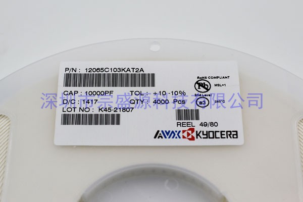 AVX陶瓷電容 1206 50V 0.01UF 12065C103KAT2A